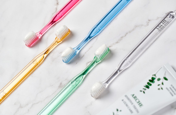 Dupont Tynex 사의 100% 미세모, 잇몸케어 & 시린이케어 기능성 클래식 칫솔, 구강질환 유발세균 99% 세정 효과, 가벼운 미세모, 잇몸케어, 치아케어, 기능성칫솔. 5가지 크리스탈 컬러(빨강, 파랑, 노랑, 초록, 투명) 각 2개씩 총 10개가 들어있습니다.